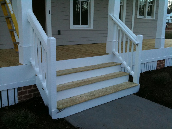 Deck with columns Posted on February 5, 2013 Pressure treated deck with pvc decorative columns and fir handrail, vertical 1×4 under skirting, and stairs deck with columns deck with columns Related
